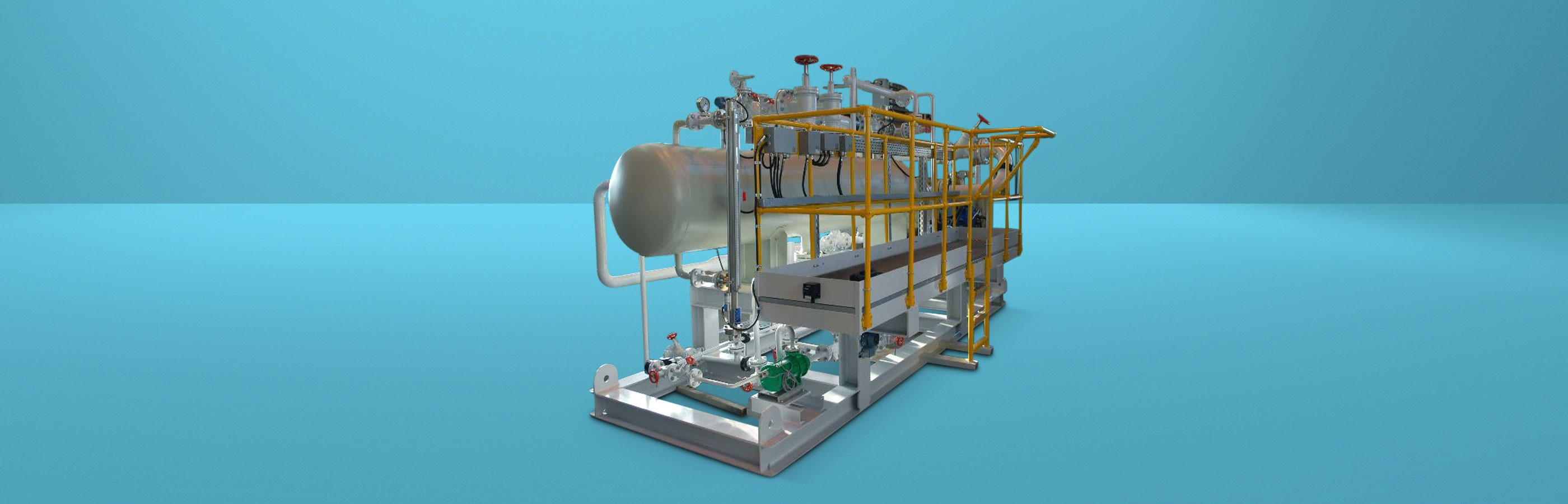 • CO2 / NH3 Flux-Hi™ Kaskade mit integriertem NH3 Abscheider, montierter Pumpengruppe für CO2 und NH3, untergebauten CO2 Sammler/Abscheider, Ölrückführung für NH3 und CO2 und angebauten Glykolkühler inklusive aller Instrumente, Ventile und benötigtem Zubehör zur sofortigen Inbetriebnahme vor Ort