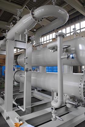 Verdampferstation mit Verdampfer und kompletter Verrohrung nach Chemiestandard.
